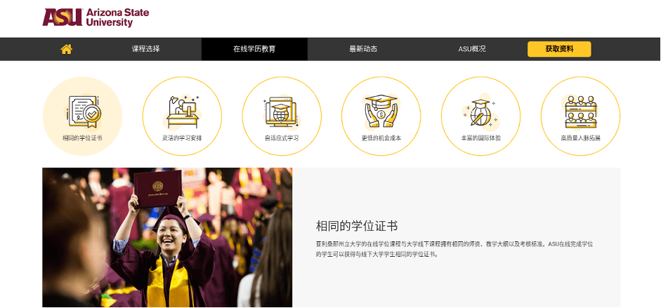 Arizona State University Online offers over 280 online degree programs, which hold the same accreditation as the traditional on-campus programs. Now, a local Chinese education company in Shanghai is helping ASU Online enroll students in China via a localized domain.