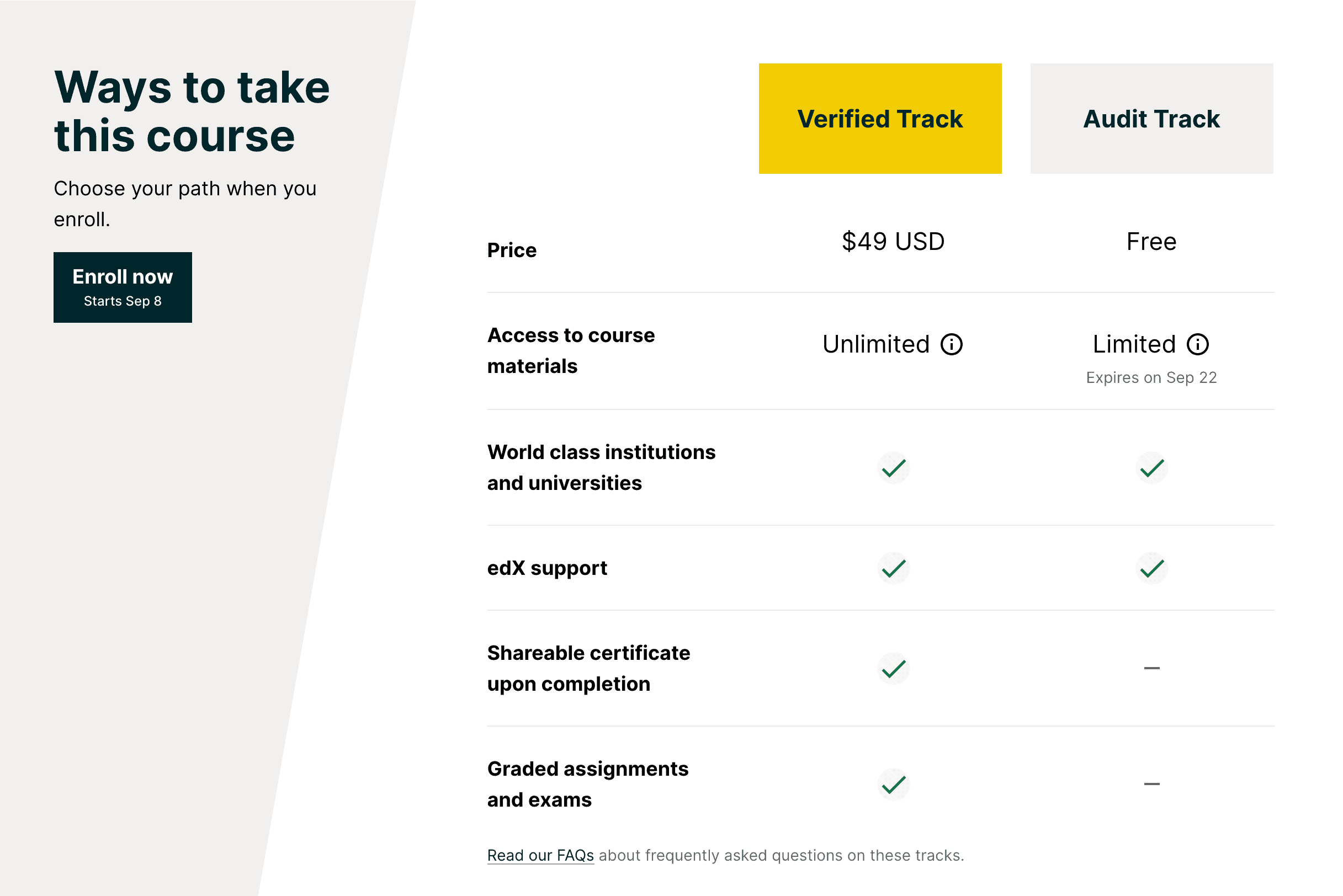 The courses in the list below are free to audit — that is, you get access to the course materials for a limited time, but can’t access graded assignments and exams, and don’t receive a certificate of completion.